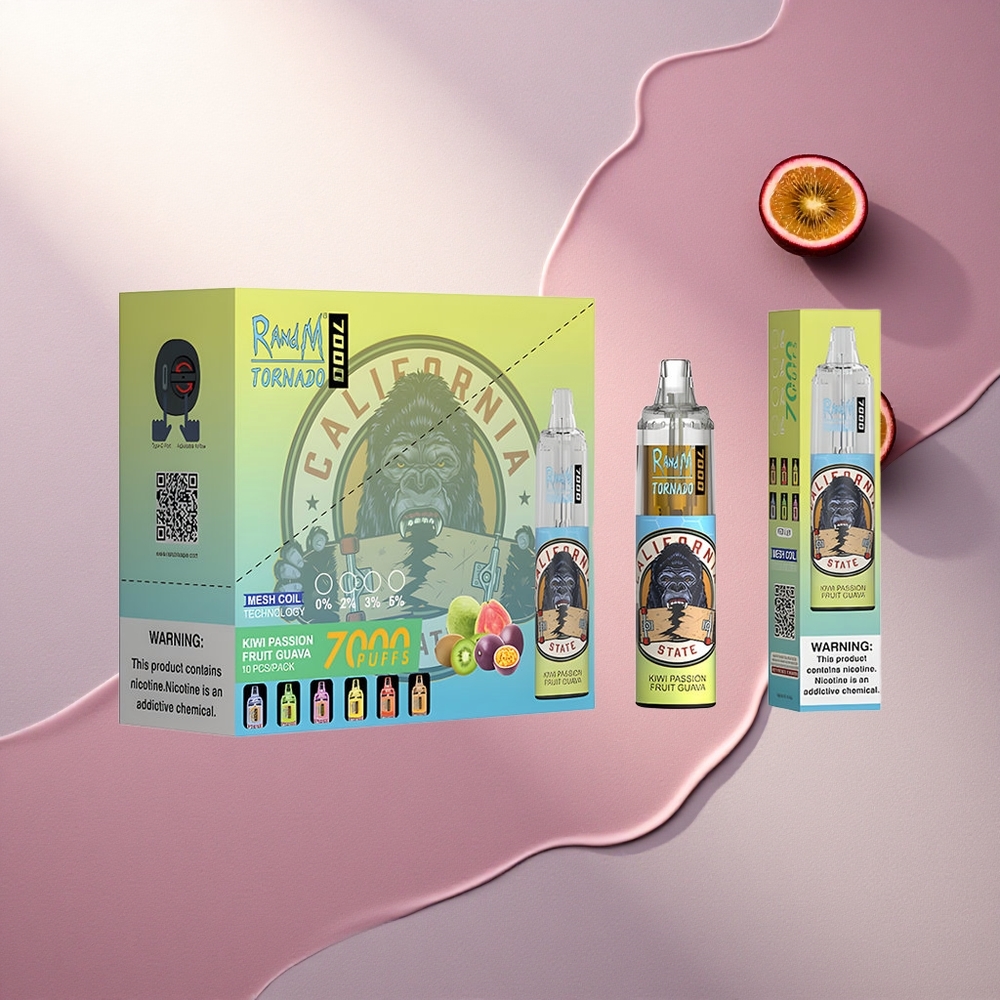RandM Fumot Tornado 7000 Puffs Kivi Marakuya Gvajva z 5% nikotina in 850 mAh baterijo